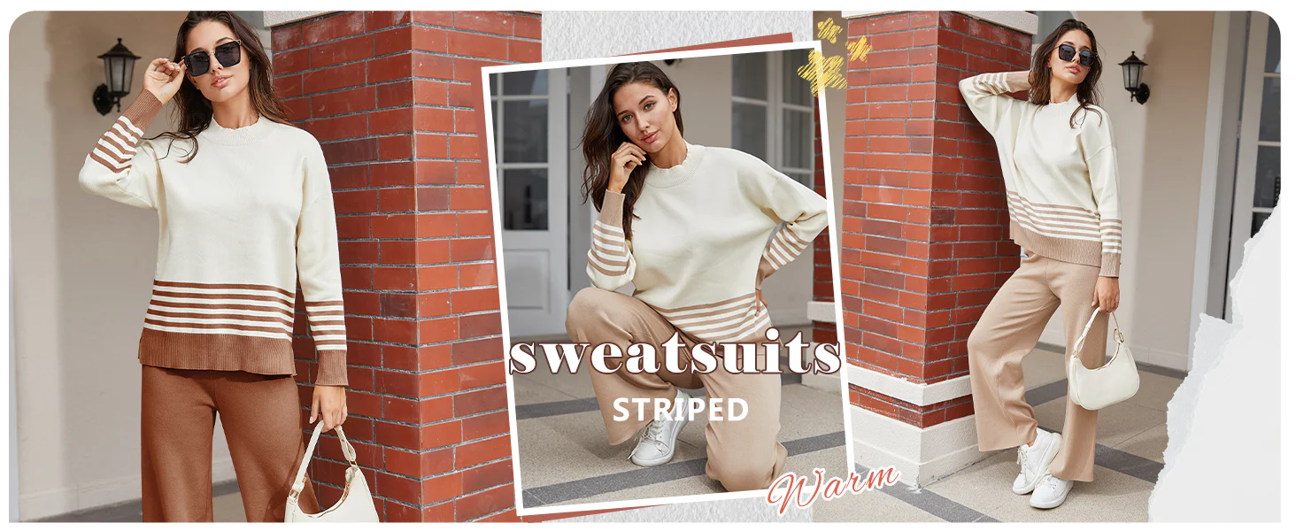 Women's Sweater Sets Long Sleeve Striped Jumper